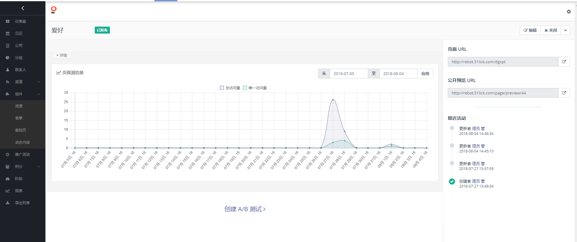 创建A/B测试按钮详情 创建A/B测试着陆页信息类似新增着陆页信息新增