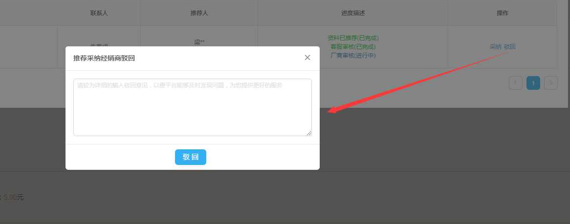 驳回弹出框界面截图