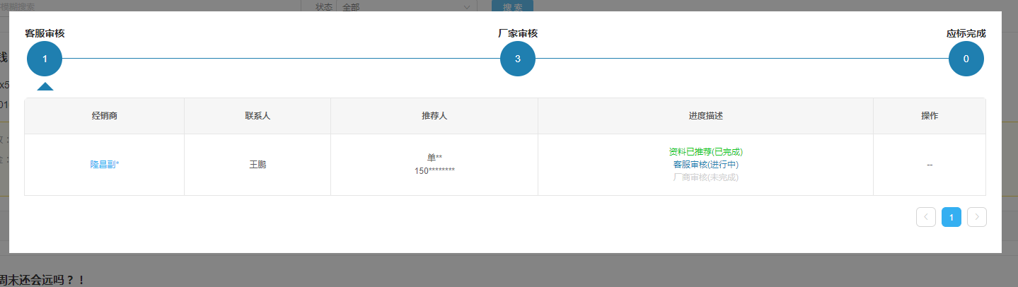 已推荐客服还未审核的经销商显示在客服审核阶段