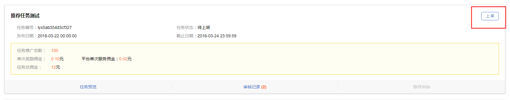 | 待上架 | 任务已审核通过,未上架 |
